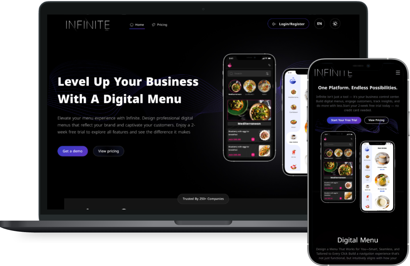 Infinite.onl is a modern, integrated platform that provides businesses with tools such as digital menus, reservation systems, data analytics, and customer relationship management. This infrastructure is designed to provide brands with a smooth user experience, high security, and personalization capabilities.